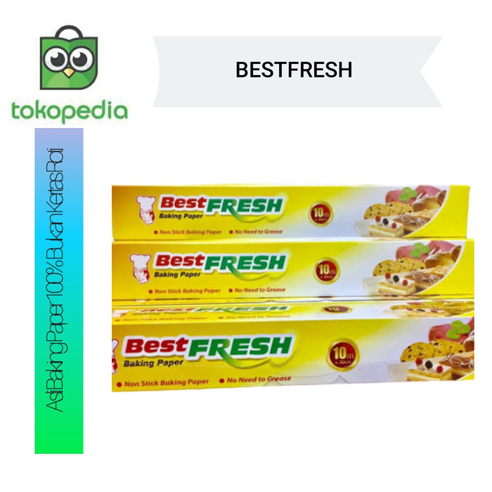 Baking Paper (Food Grade) merek BEST FRESH diformulasikan khusus dengan pelapis anti lengket, sehingga kertas tidak perlu diolesi / diminyaki. Baking paper ini aman digunakan sebagai lapisan atau alas di loyang panggangan kue, supaya adonan tidak lengket ke loyang saat dipanggang dan bisa juga untuk mengukus kue.