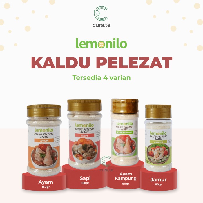 Gunakan selalu Kaldu Pelezat Alami Lemonilo yang bebas dari bahan pengawet, perasa, dan pewarna buatan pada setiap masakan Anda dan sajikan kelezatan alami yang sesungguhnya untuk seluruh anggota keluarga Anda!