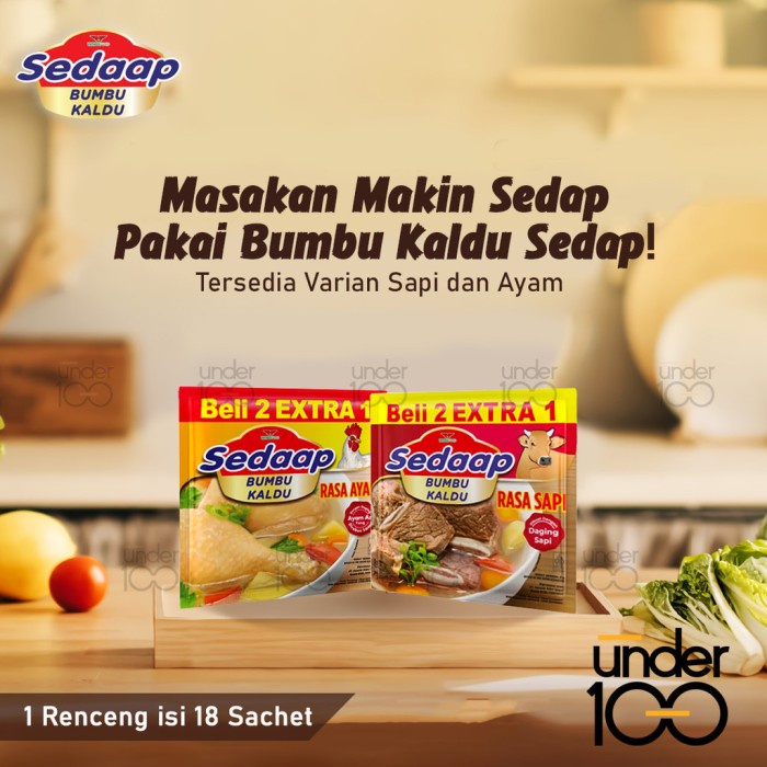 TERBARU Under100 Sedap Bumbu Kaldu Rasa Sapi Rasa Ayam 1 Renceng 9gr x 18 Pcs HALAL BPOM