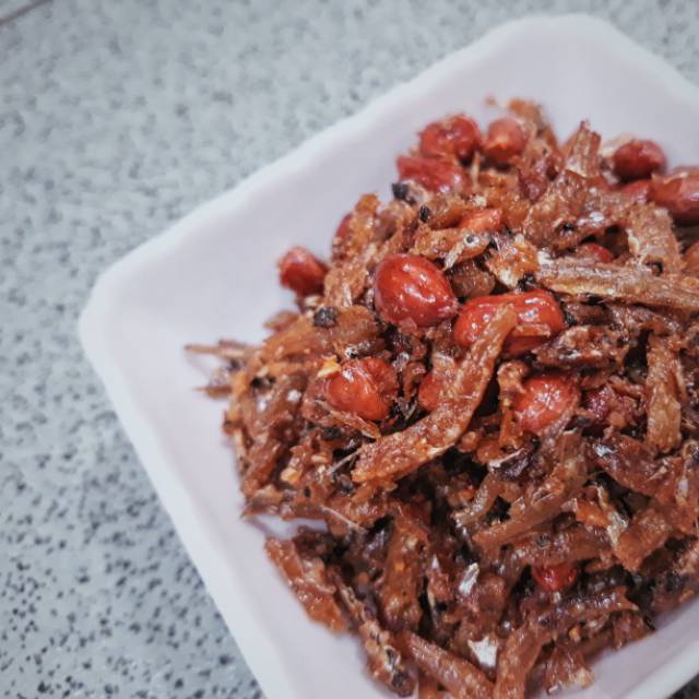 Teri Kukus dan kacang di goreng kering dipadukan dengan bumbu pedas manis