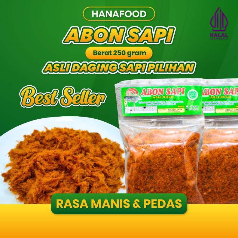 Abon Sapi Asli Solo merupakan abon yang terbuat dari bahan daging sapi pilihan dan rempah-rempah tradisional Ttanpa pengawet dan tanpa pewarna diolah secara higienis sehingga menghasilkan rasa yang gurih, nikmat dan lezat. Sangat cocok untuk dijadikan lauk pauk sehari-hari.