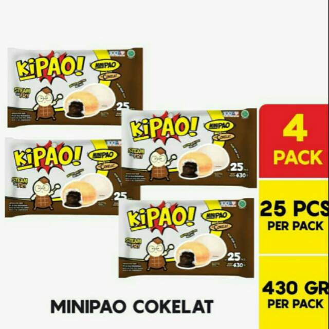 Paket berisi 4 pack KIPAO Minipao Cokelat dengan isi 25 Pcs per pack
