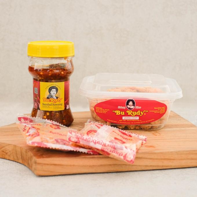 Udang digoreng crispy khas Bu Rudy dengan kemasan cup dengan ditambah sambal bawang 1 pcs.