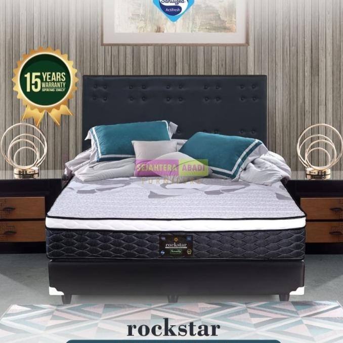 Kasur tipe Rockstar merek Serenity Produksi dari Elite springbed yang tebal dengan bahan busa terbaik Royal Foam high density foam dan rebonded foam dengan tambahan plush top. Sudah menjadi kebanggaan Elite Spring Bed kasurnya terjaga tingkat kehigienisannya karena telah lulus uji coba teknologi Sanitized sehingga memperoleh sertifikasi SANITIZED AG Switzerland ahli anti mikroba dan sanitized sejak tahun 1935. Dengan teknologi high density foam plushtop dan perpaduan rebonded foam sehingga kasur nyaman dan tidak mudah goyang ketika teman tidur anda bergerak. Kasur ini termasuk orthopedic foam dengan feel firm sehingga berguna untuk kesehatan tulang belakang sehingga ketika bangun tidur ridak terasa pegal atau pun sakit.