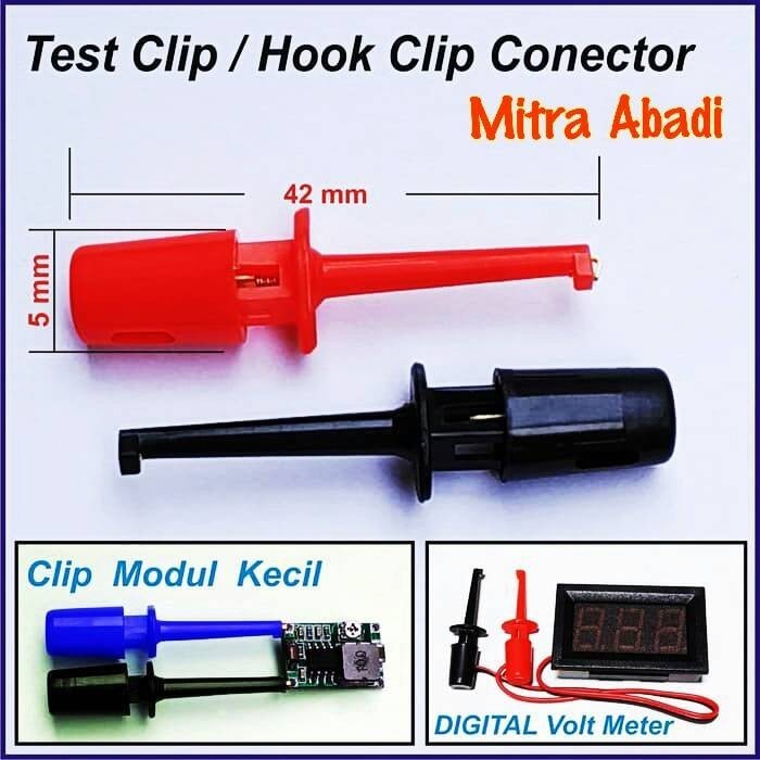 Test clip hook memiliki fungsi yang sama seperti jepit buaya (Alligator clip), namun test clip hook memiliki capit berukuran yang lebih kecil. Biasanya digunakan untuk menguji (test) kaki IC, Chipset, SMD dan komponen-komponen lain yang memiliki ukuran sangat kecil. Jepit kecil akan keluar secara otomatis pada ujung test clip hook apabila pegas/per didalamnya ditekan menggunakan jari.