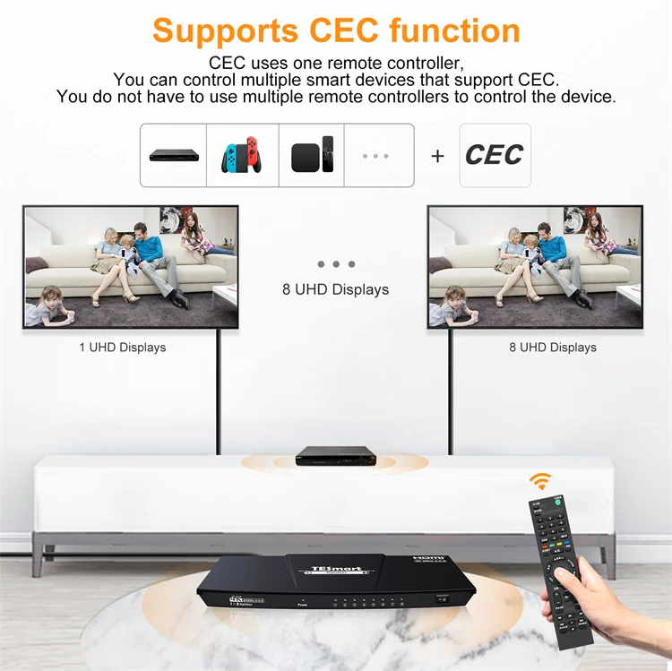 TESmart сплиттер 1x8 18 Гбит/с аудио видео коммутатор 1/8 HDR10 HDCP2.2 EDID 4k60HZ CEC HDMI аудио сплиттер преобразователи