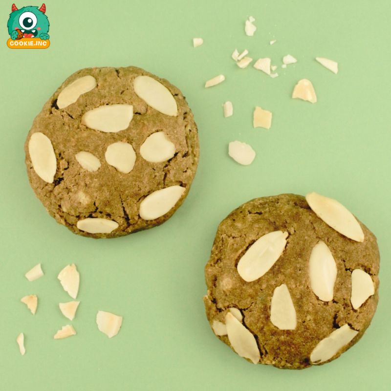 Green tea dough with Green Tea Chocolate filling and topped with almond