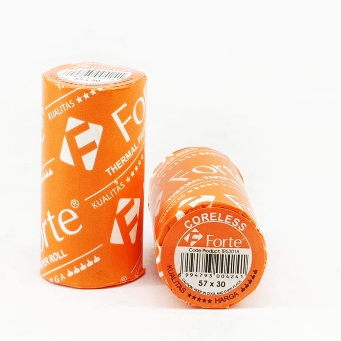 Thermal paper roll forte 57 MM X 30 MM yang biasa digunakan untuk MOBILE PRINTER, PRINTER BLUETOOTH, Cashregister , Printer Kasir maupun Mesin EDC .