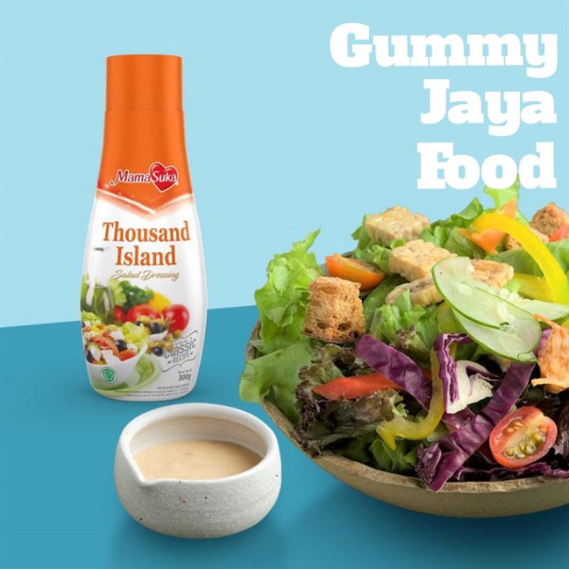 Thousand Island tomat segar serta acar, dan bahan lainnya. Cocok untuk berbagai macam jenis salad sayur atau buah untuk menambah rasa dan kesegaran.