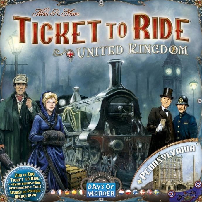 Ticket to Ride Map Collection: Volume 5 United Kingdom & Pennsylvania contains a double-sided game board with new rules for use with Ticket to Ride or Ticket to Ride: Europe with players now creating train lines in the British Isles and in Pennsylvania.
