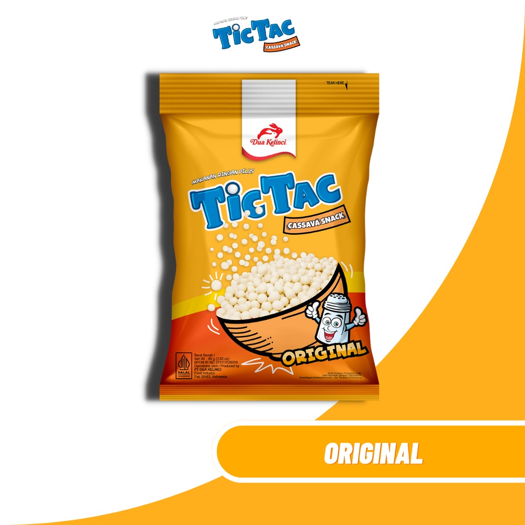 Snack terbuat dari tepung tapioka berbentuk bulat berisi campuran berbagai macam snack Tic Tac yang enak dan renyah