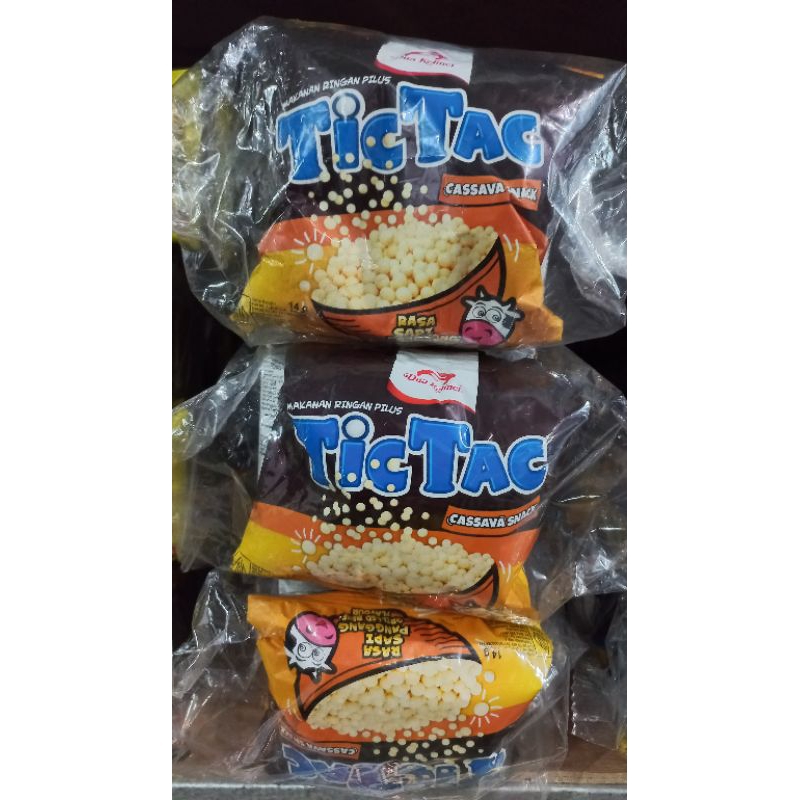 Dua Kelinci Snack Pilus Tic Tac Sapi Panggang dalam kemasan 14 gram, memberikan rasa sapi panggang yang lezat pada camilan pilus.