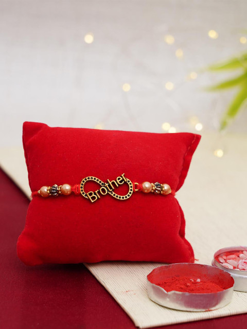 TIED RIBBONS Multicoloured Stone-Studded Infinity Rakhi with Card & Roli Chawal, Multi