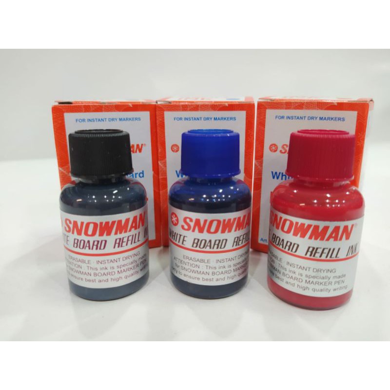 Tinta spidol whitebiard marker snowman ini cocok digunakan untuk mengisi ulang segala jenis dan merek spidol (disarankan utk Snowman tipe bg-12).