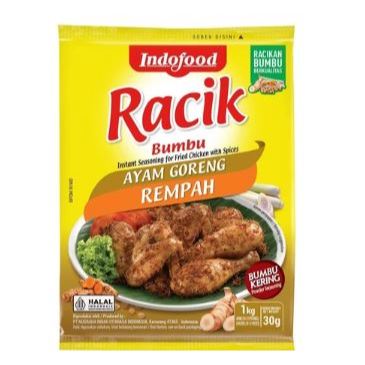 1 bungkus Bumbu RACIK Ayam Goreng Rempah cukup untuk 1x masak untuk 1 kg Ayam (10 - 12 potong) 2 porsi ayam goreng.