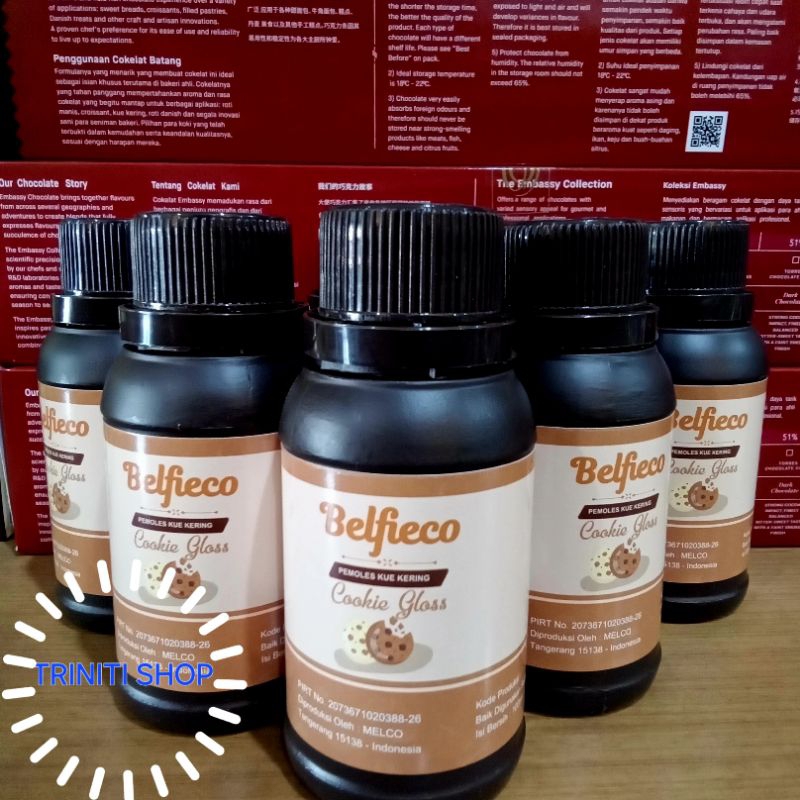 Toffieco Cookie gloos adalah produk Olesan , yang di anjurkan untuk membuat nastar menjadi lebih kuat, tidak mudah retak, dan mengkilap. Untuk 1 botol berisi 100 ml, Produk Ini Sama Fungsinya Dengan Egg Gloss, Cokkies Glaze, Hanya Beda Branding saja, Tetapi Untuk Fungsi Sama saja.