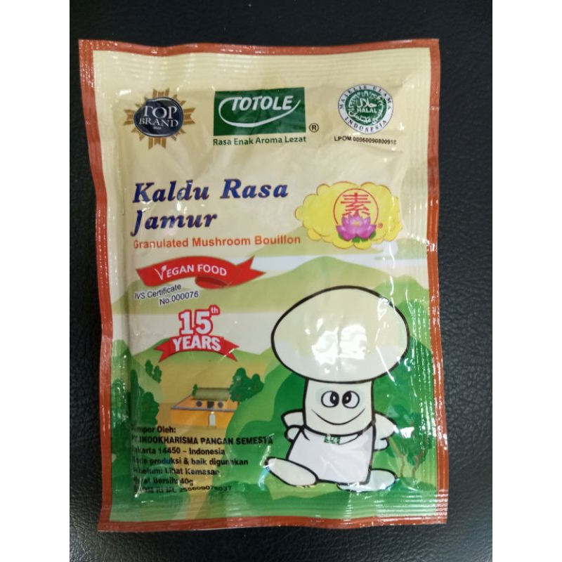 Kaldu jamur ini bisa digunakan sebagai pengganti kaldu daging, sehingga cocok untuk vegetarian. Selain itu, kaldu jamur dari Totole diklaim tidak mengandung kolesterol. Totole Kaldu Rasa Jamur memiliki ukuran 40