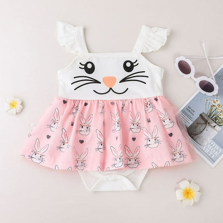 niuredltd baby summer girls autumn spring clothing cute rabbit bunny easter print romper dress clothing