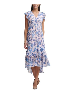 TOMMY HILFIGER Женское розовое шифоновое платье хай-лоу длины чайного цвета с рукавами-крылышками, Розовый