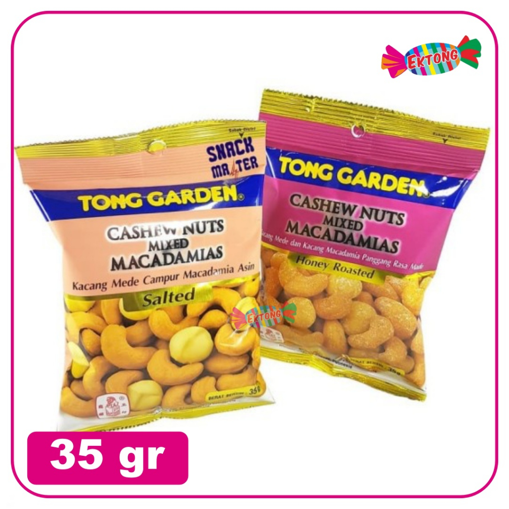 Salah Satu varian kacang yang ditawarkan dari brand Tong Garden Adalah Olahan Kacang Mede dan Macademia. Macadamia adalah salah satu jenis kacang-kacangan yang masih jarang diketahui banyak orang. Kacang ini aslinya berasal dari Asutralia, dan merupakan kacang termahal di dunia, dikarenakan rasanya kacang yang lembut dan enak dan terbilang langka. Jika dimakan, kacang macadamia dapat bermanfaat bagi kesehatan tubuh. Seperti dapat menjaga bakteri baik pada usus, melancarkan pencernaan, melancarkan buang air besar, dan menyehatkan organ jantung.