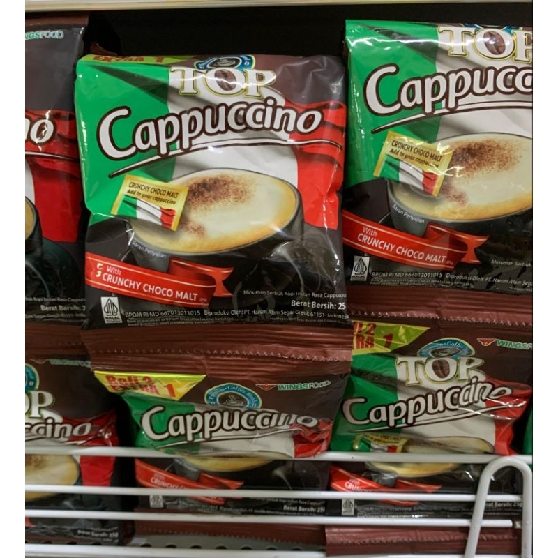 Kopi Top Cappuccino adalah kopi bubuk instan yang memiliki rasa cappuccino khas Italia. Kopi ini terbuat dari perpaduan biji kopi arabika dan robusta.
