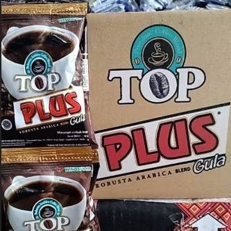Top Kopi Plus yaitu kopi bubuk instan murni plus gula yang terbuat dari kopi Robusta Arabica pilihan Penyajian mudah dan praktis.