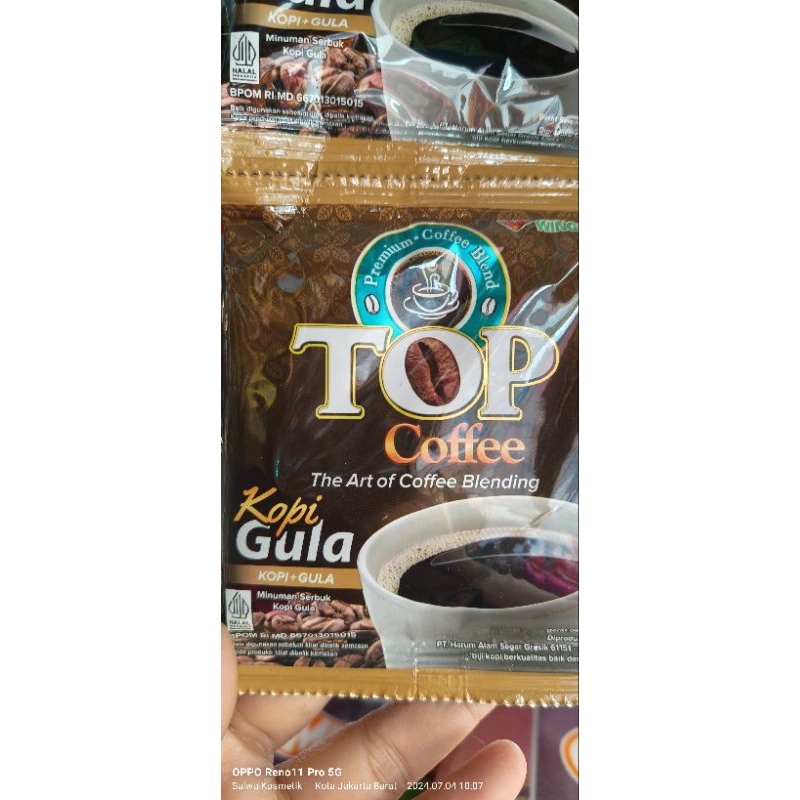 Top Coffee kopi merupakan kopi instan yang akan menambah kehangatan disetiap momen istimewa dengan sensasi rasanya yang khas dan melimpah. campuran unik antara kekuatan rasa dan aroma kopi kualitas terbaik dengan susu yang lembut gurih.