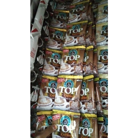Top Kopi Susu Gula Kopi Instan adalah kopi sachet yang diolah dari perpaduan biji kopi robusta dan arabika. TOP Coffee dihasilkan melalui pemilihan biji kopi, pemetikan & pencucian, ketepatan temperatur & penghitungan yang detail serta tepat saat pemanggangan. 1 Renteng isi 12 sachet