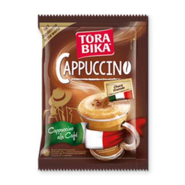 Torabika Cappucino, paduan antara kopi instan, gula dan krimer. Taburkan pula Choco Granule di atas krim cappucino agar menambah rasa istimewa anda bersama Torabika Cappucino. Komposisi : gula, krimer nabati, kopi instan, Choco Granule ( mengandung susu bubuk skim dan ekstrak malt), perisa cappucino