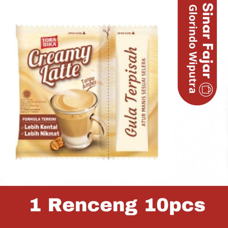 Kopi Torabika Creamy Latte adalah kopi instan yang dikemas terpisah antara bubuk kopi dan gula. Dengan kemasan terpisah, Anda bisa mengatur tingkat kemanisan kopi sesuai selera. 25g, perenceng isi 10 pcs.