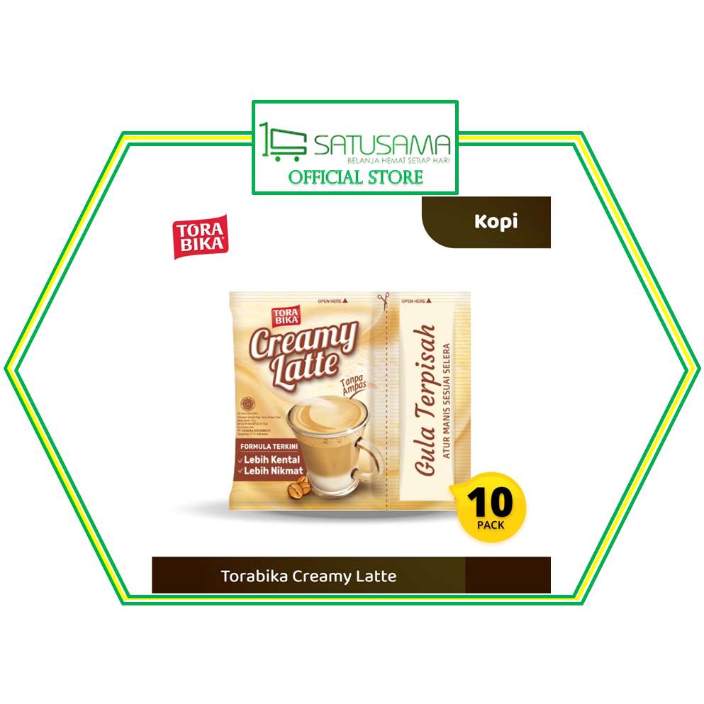 TORABIKA Creamy Latte Renceng [10Sachet/ 25 g], Kopi instan super creamy dengan gula terpisah. Perpaduan antara campuran kopi instan yang wangi dengan creamer manis dan lezat yang memberikan keistimewaan untuk menikmati rasa kopi. Cita rasa kopi Latte yang super creamy dengan gula yang bisa diatur.