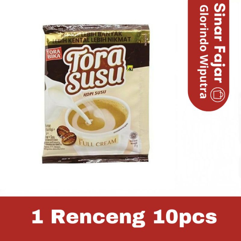 Torabika Tora Susu adalah kopi instan yang terbuat dari paduan kopi arabika dan robusta, susu full cream, gula, dan krim. Kopi ini memiliki takaran yang pas antara kopi, susu, dan krim. 28g, perenceng isi 10 pcs.