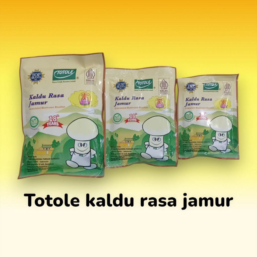 Totole Kaldu Jamur adalah penyedap rasa alami yang terbuat dari jamur dan digunakan sebagai pengganti MSG (Monosodium Glutamate) atau micin. Totole hadir dalam bentuk granular atau butiran, dan dipercaya dapat memberikan rasa gurih dan umami pada berbagai masakan. Selain itu, Totole juga diklaim sebagai produk yang cocok untuk vegetarian karena tidak mengandung kolesterol dan gluten free.