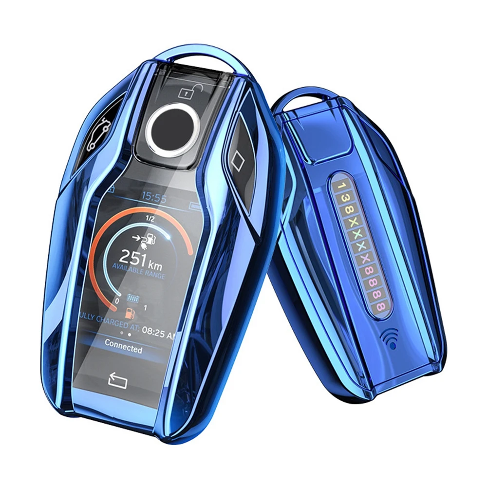 TPU силиконовый чехол для ключей от машины Обложка держатель с брелок для BMW 5/7 серии 740 G30 GT X3 с ЖК-дисплей Дисплей функция "антипотеря Nano оболо...
