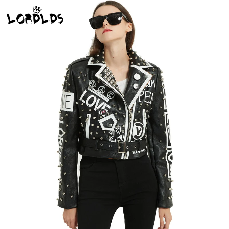 LORDLDS Women Black Leopard Leather Jacket Zip Up Moto Biker Fashion Streetwear Coats and Jackets Womens Clothing