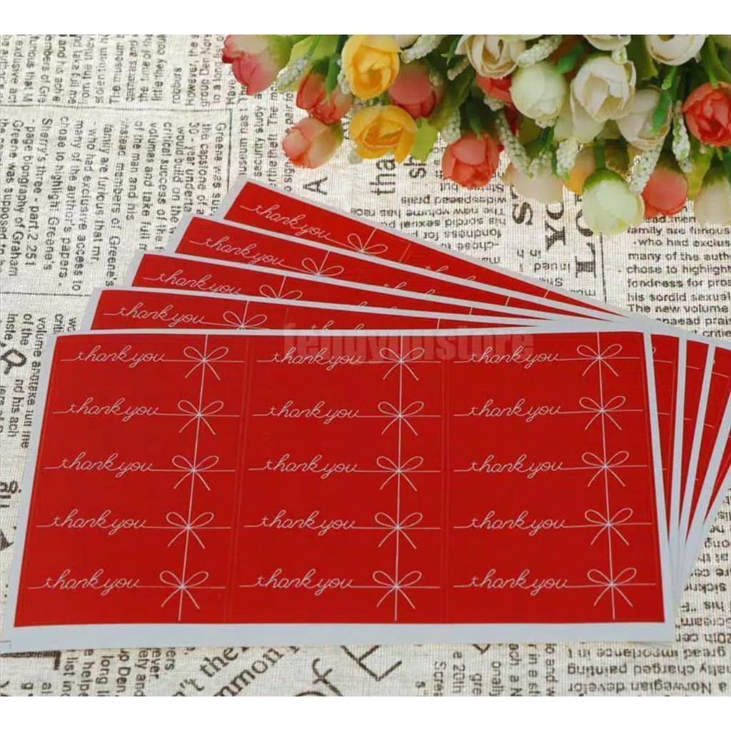 TQL03 Sticker Label Thank You Kotak Red White Ribbon Seal Kemasan Packing