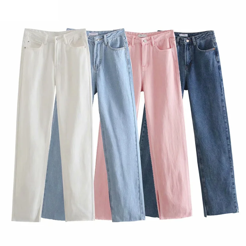 TRAF Za 2021 белые джинсы женские Высокая талия джинсы-клеш Для женщин разрез джинсы в винтажном стиле с розовыми брюками для Для женщин синие дж...