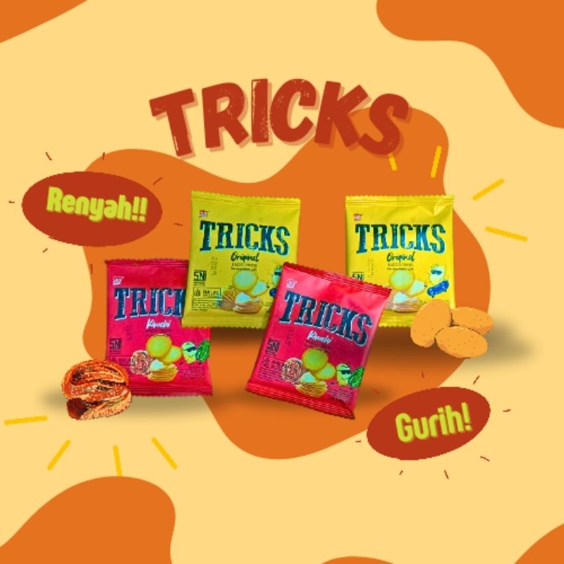 Tricks Crisps adalah camilan renyah yang menawarkan sensasi rasa gurih dan lezat di setiap gigitan. Terbuat dari bahan-bahan berkualitas, keripik ini diproses dengan teknologi modern untuk menghasilkan tekstur yang renyah dan cita rasa yang memanjakan lidah.