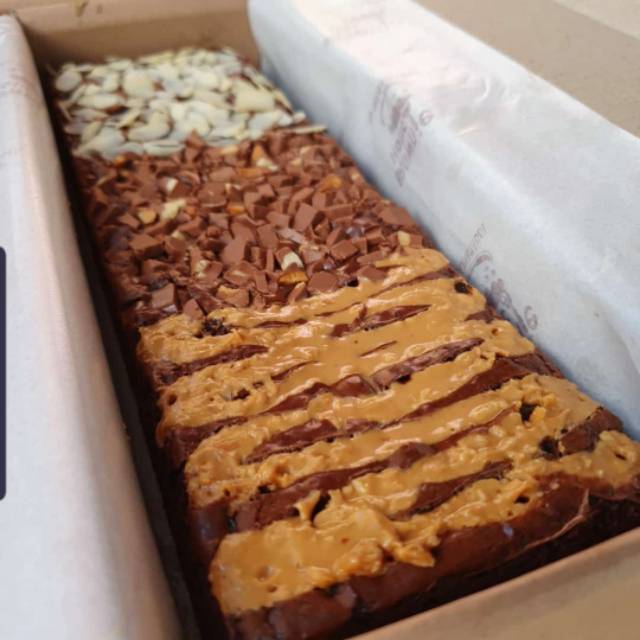Browniea dengan 3 topping premium almond, cadbury, skippy
