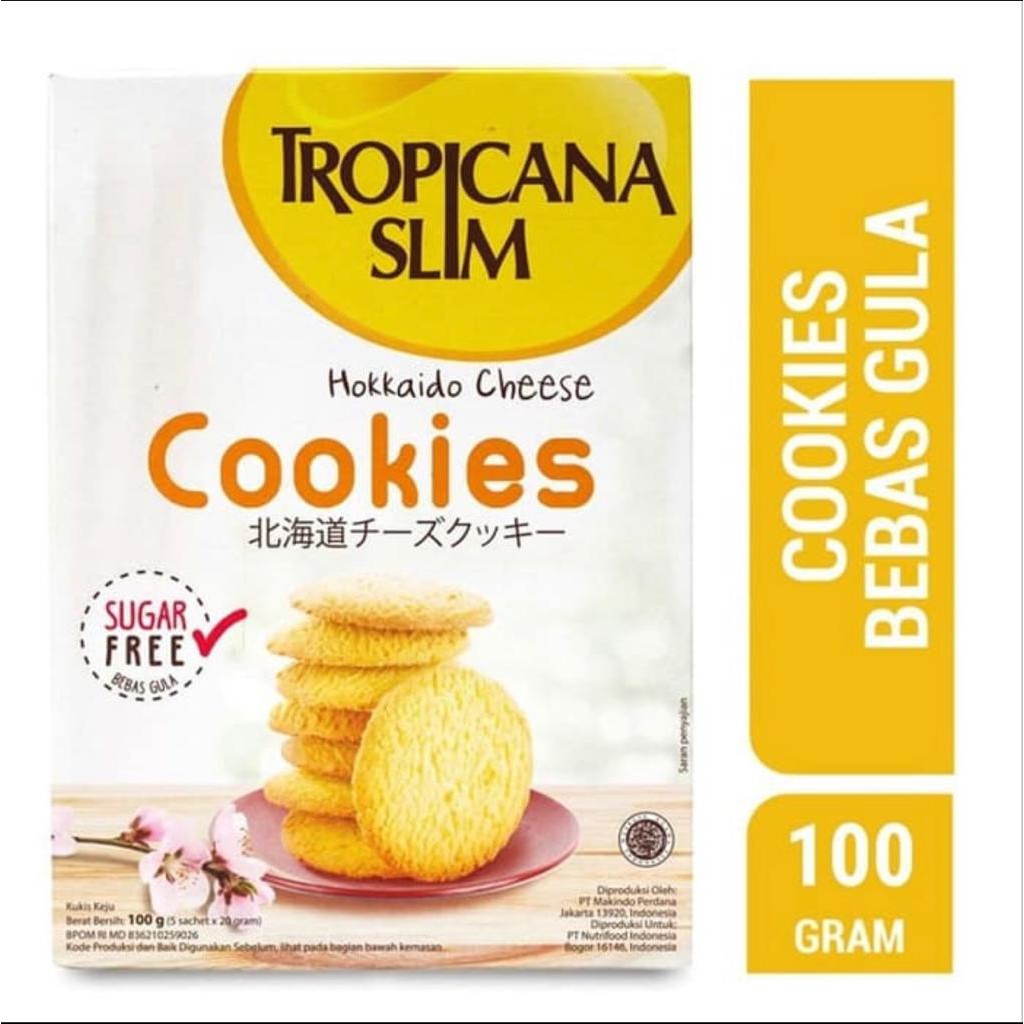 Tropicana Slim Hokkaido Cheese Cookies merupakan cookies sehat bebas gula dengan perpaduan gurihnya keju Hokkaido dan manisnya Tropicana Slim.