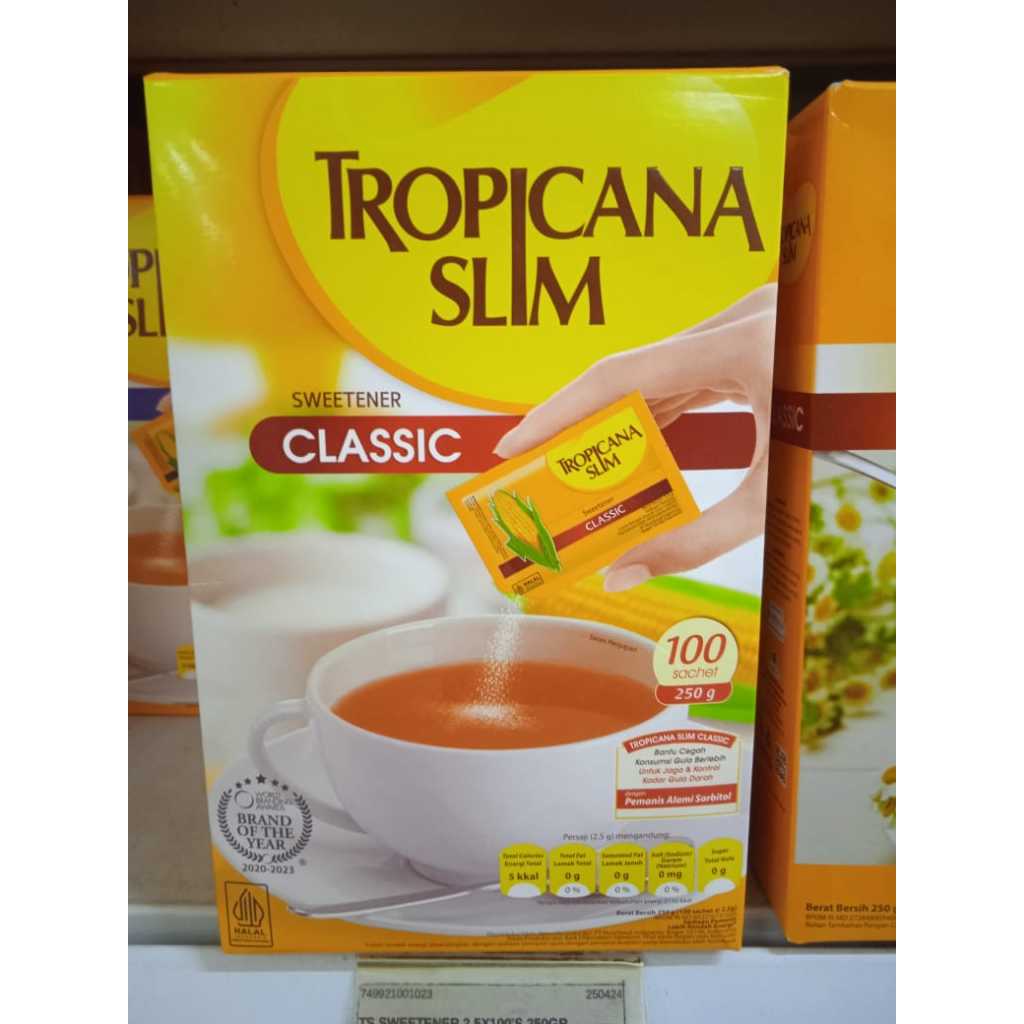 "Tropicana Slim Sweetener Classic telah dipercaya selama hampir 50 tahun oleh masyarakat Indonesia dan telah dinikmati di lebih dari 30 negara di dunia. Nikmati rasa manis Tropicana Slim Sweetener Classic dengan berbagai minuman favoritmu tanpa rasa khawatir karena produk ini diformulasikan bebas gula pasir dan rendah kalori sehingga ideal untuk bantu jaga dan kontrol kadar gula darah.