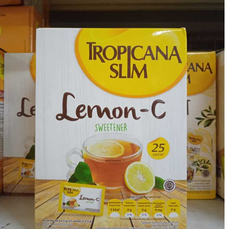Tropicana Slim Sweetener Lemon-C menawarkan rasa manis nikmat dengan kesegaran lemon pada minuman favoritmu. Tropicana Slim Sweetener Lemon-C juga diperkaya dengan vitamin C.