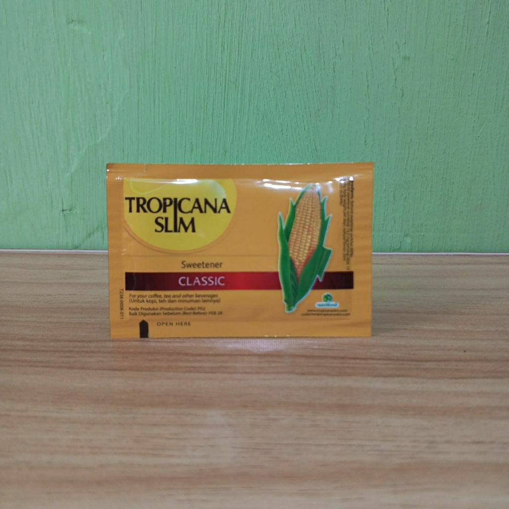 1 sachet Tropicana Slim Sweetener Classic setara dengan kemanisan 2 sendok teh gula pasir.