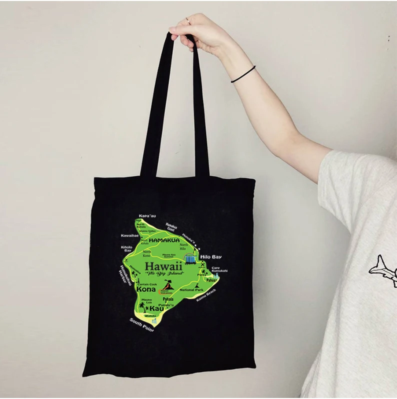Холщовая Сумка с картой Гавайского острова, сумки для покупок Aloha, модная Экологически чистая милая сумка с мультипликационным принтом, мно...