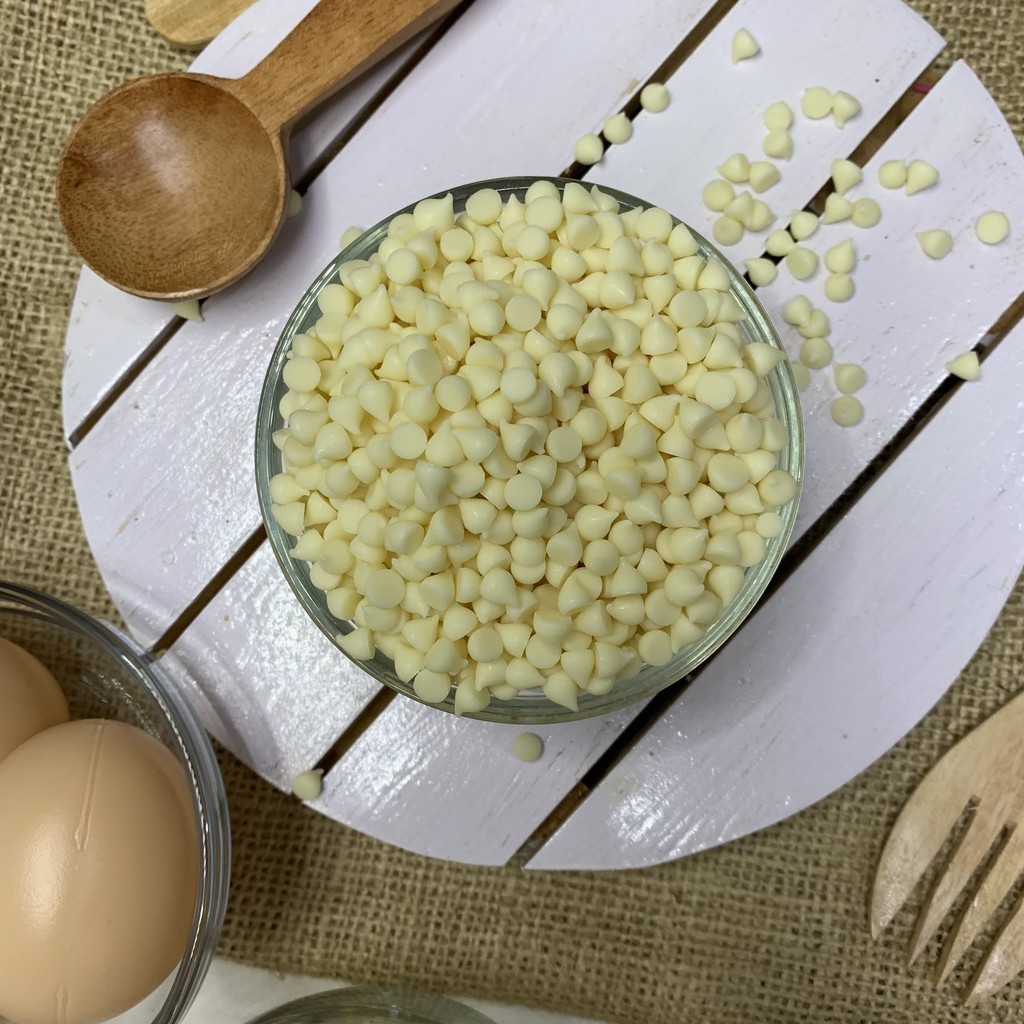 Chocochip white choco dapat digunakan sebaagai topping pada kue, dimakan bersama