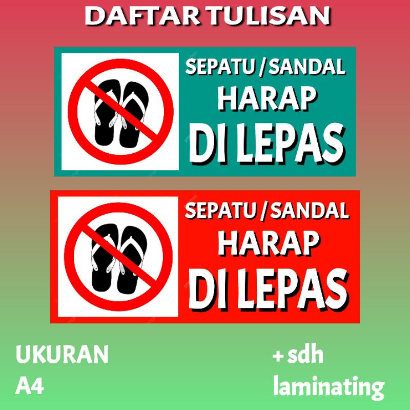 TULISAN SANDAL HARAP DI LEPAS +LAMINATING JS8