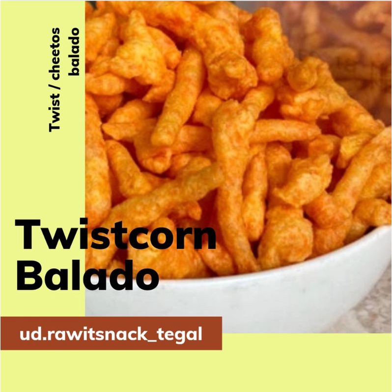 Twist twist balado dengan tekstur dan rasa seperti cheetos. rasanya gurih dan nikmat, teksturnya renyah sekaligus lembut dimulut. Isi lebih banyak, disukai segala usia, tidak ada tandingannya