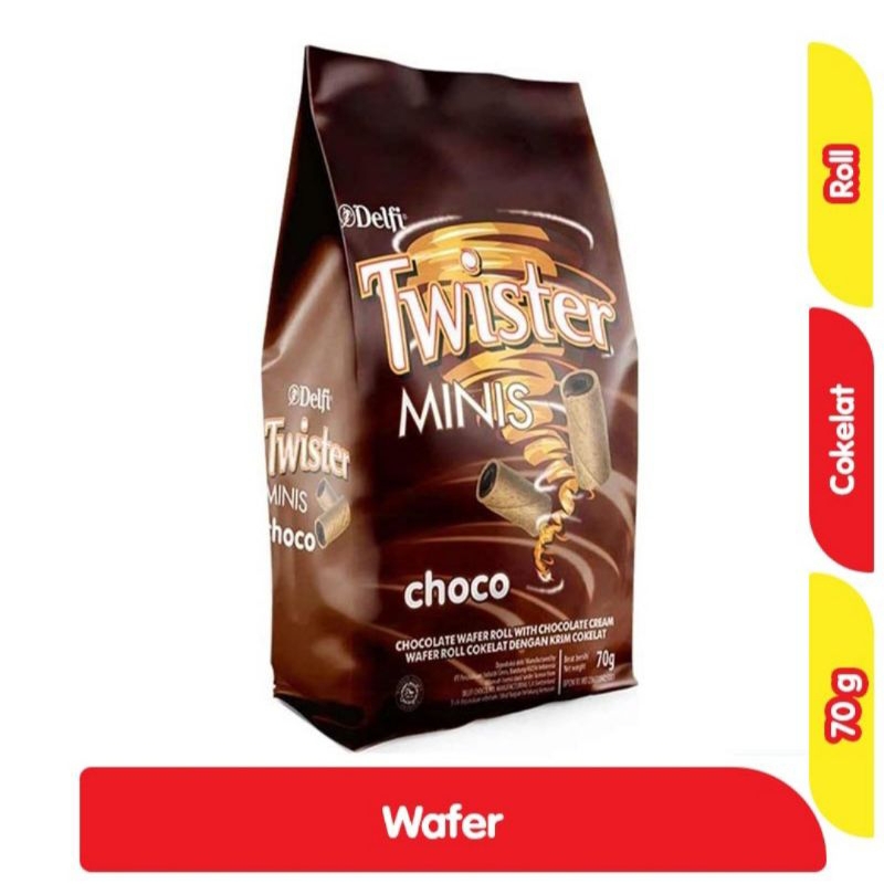 Twister Minis Wafer Roll Chocolate adalah camilan wafer renyah bentuk rol mini dengan krim coklat manis dan meleleh di dalamnya, sehingga Anda dapat merasakan kenikmatan caminal wafer rol terasa secara sempurna hanya dengan sekali gigitan. Wafer dengan tekstur renyah yang berpadu dengan manis dan lembutnya krim coklat dari Delfi yang diolah dari biji coklat matang pilihan selalu dapat menyajika rasa coklat alami pilihan di lidah Anda dan selalu membuat Anda terus ingin menikmatinya. Kerenyahan wafernya membuat selalu renyah tawa Anda bersama orang-orang tercinta. Tersedia dalam kemasan bag 80 gram sangat cocok untuk dinikmati bersama teman, sahabat, dan keluarga tersayang.