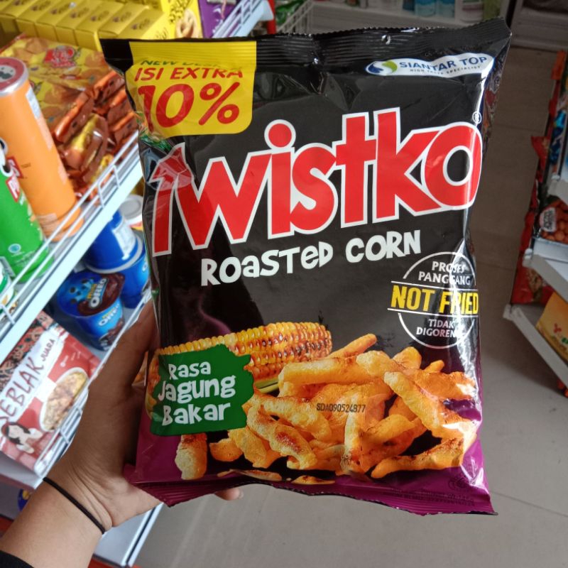 Twistko adalah makanan ringan berbahan dasar jagung yang memiliki rasa jagung bakar yang disukai oleh anak muda karena memiliki rasa yang enak. ✨