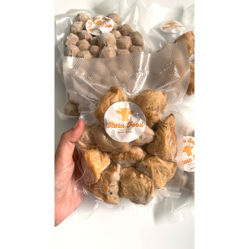 Tahu bakso Rasa Food merupakan varian bakso yang digabungkan dengan tahu yang diolah dengan bahan-bahan pilihan berkualitas sehingga dapat memberikan rasa gurih, lezat, dan kenyal sekaligus dalam satu gigitan. Cocok disajikan sebagai makanan ringan yang dapat dipadukan dengan mie instan dan dapat dijadikan tahu bakso goreng di rumah, maupun pada saat acara-acara hari besar yang mengenyangkan.